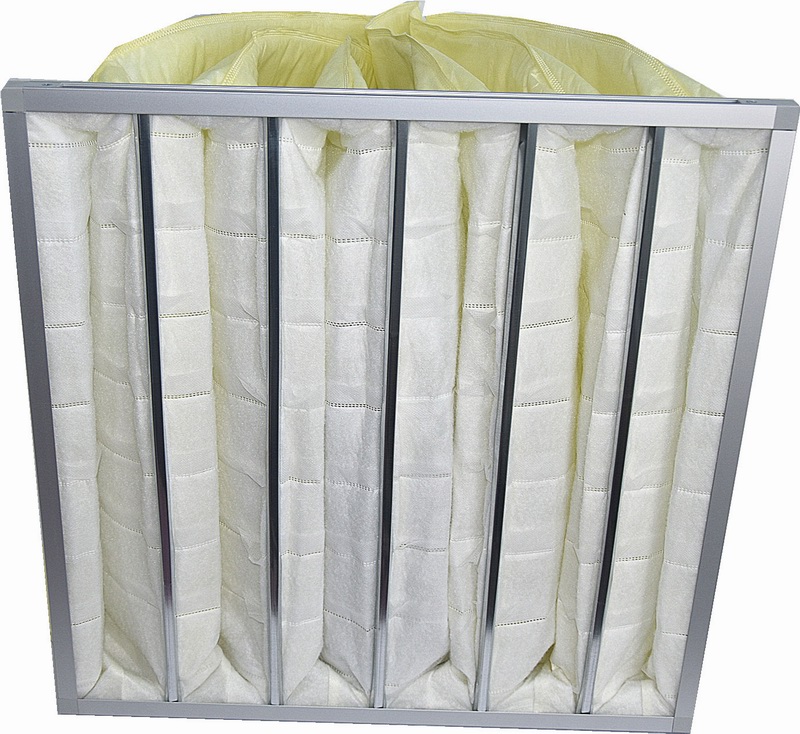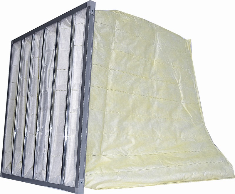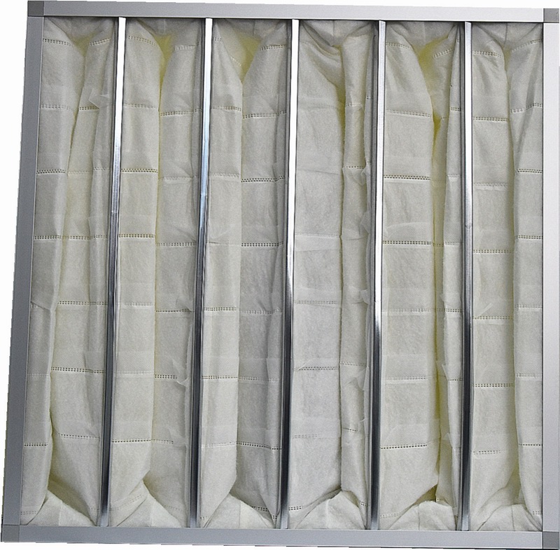 产品结构:外框材料可用铝合金框、镀锌板框、ABS塑料外框,滤料为由聚丙烯熔喷无纺布和丙纶纤维及纺粘布复合而成无纺布滤袋,袋子采用超声波热合工艺无缝熔合。每个滤袋具有多道不织布隔片以超声波结融合工艺平均分布于滤袋中,此隔片除了具有均风作用外,其主要的作用是控制滤袋承受风压时,不过度膨胀相互遮蔽,而降低有效过滤面积与效率。