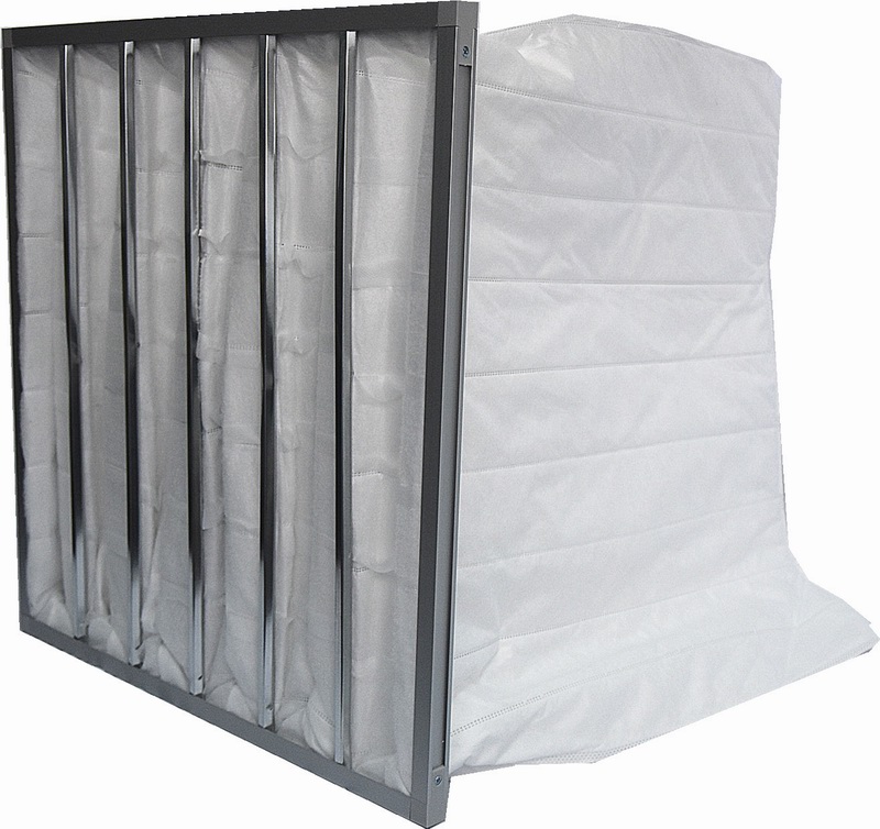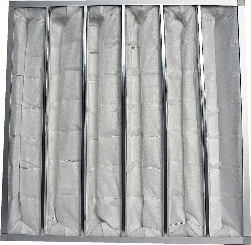 产品结构:外框材料可用铝合金框、镀锌板框,ABS塑料外框,滤料为由聚丙烯熔喷无纺布和丙纶纤维及纺粘布复合而成无纺布滤袋,袋子采用超声波热合工艺无缝熔合。每个滤袋具有多道不织布隔片以超声波结融合工艺平均分布于滤袋中,此隔片除了具有均风作用外,其主要的作用是控制滤袋承受风压时,不过度膨胀相互遮蔽,而降低有效过滤面积与效率。
