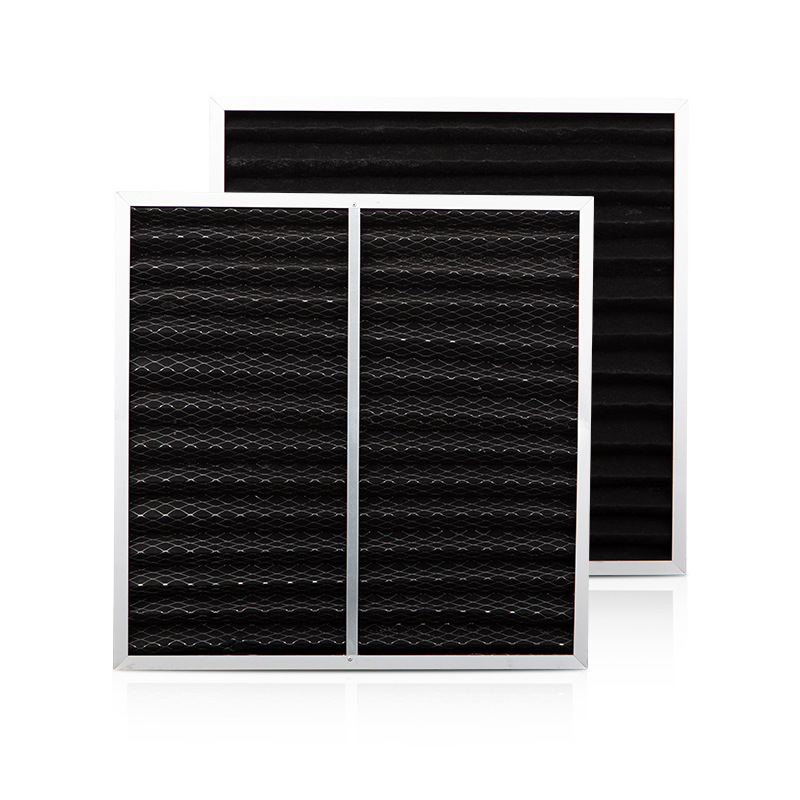 产品描述:初效板式活性炭双面附网是使用活性炭过滤棉(以优质粉状活性碳为吸附材料,采用高分子粘结材料将其载附在纤维基体之上制成过滤棉)作为滤料,楔形折叠造型,配以金属外框,制成板式结构。该型过滤器能有效去除空气中的有害物质,也可达到滤尘效果。但是不可清洗,属于一次性消耗品。
