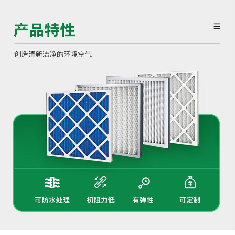 1. 材料:一般采用玻璃纤维、无纺布、尼龙网等易于清洁或更换的材料。
