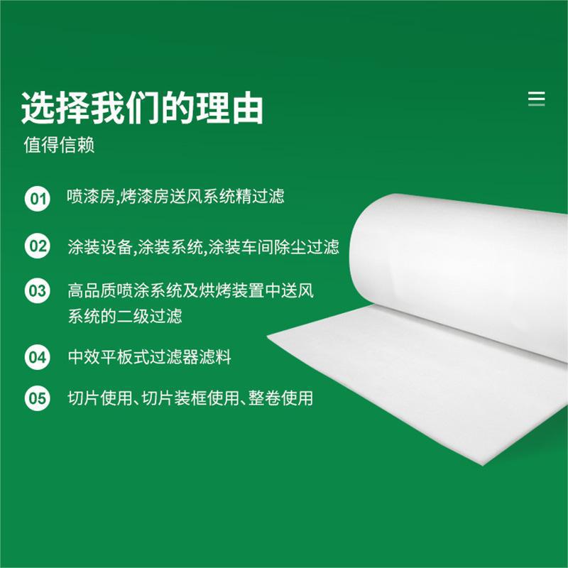 阻燃性:中效过滤棉符合防火分类标准,如欧洲DIN53438-F1及美国UL900-class2等,具有较高的阻燃性能,可以在一定程度上防止火灾的发生。