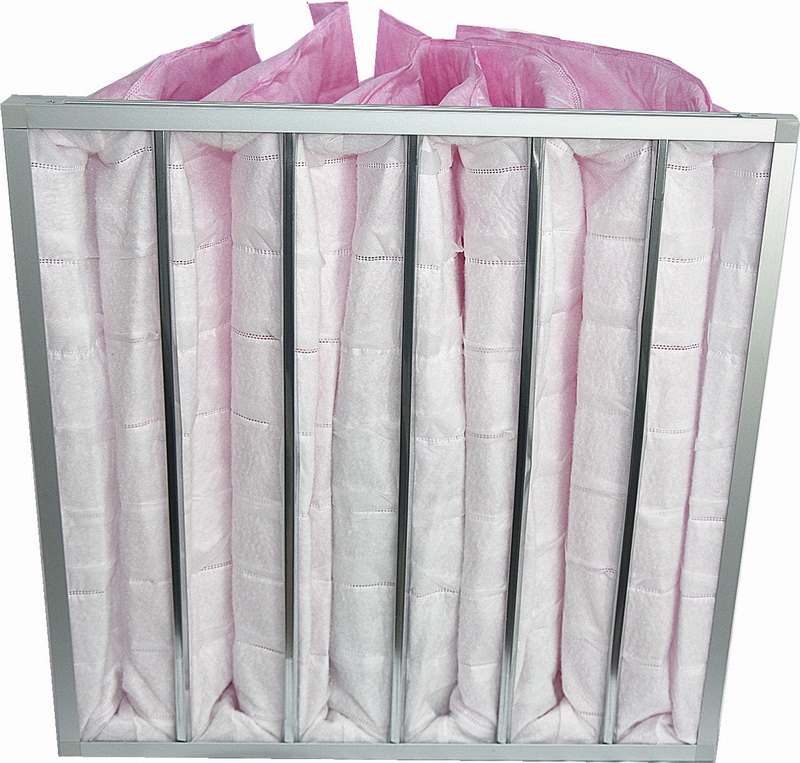 产品结构:外框材料可用铝合金框、镀锌板框,ABS塑料外框,滤料为由聚丙烯熔喷无纺布和丙纶纤维及纺粘布复合而成无纺布滤袋,袋子采用超声波热合工艺无缝熔合。每个滤袋具有多道不织布隔片以超声波结融合工艺平均分布于滤袋中,此隔片除了具有均风作用外,其主要的作用是控制滤袋承受风压时,不过度膨胀相互遮蔽,而降低有效过滤面积与效率。